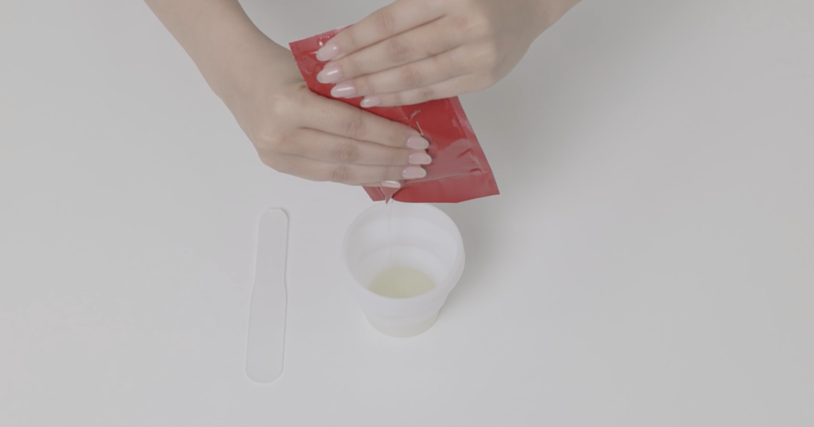 全体的に混ざるように専用のスパチュラで20秒を目安に混ぜます。